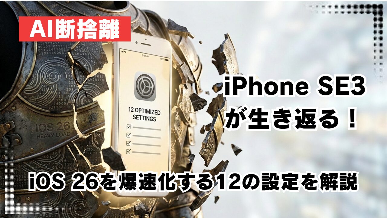 この記事では、実際に私が使っている iPhone SE3 を iOS 26 にアップデートしてもサクサク動かすために試した「12の魔法の設定」を解説します。